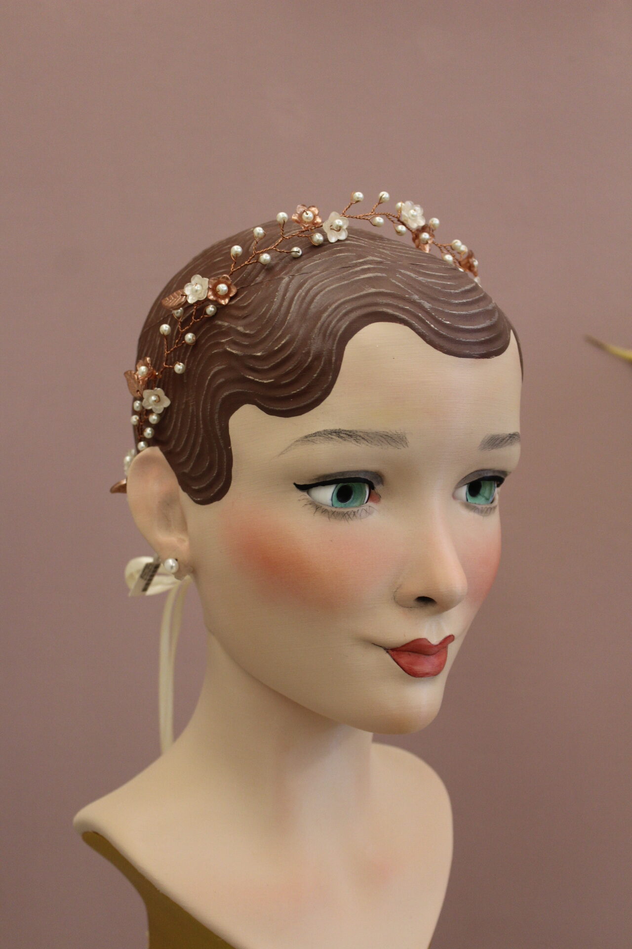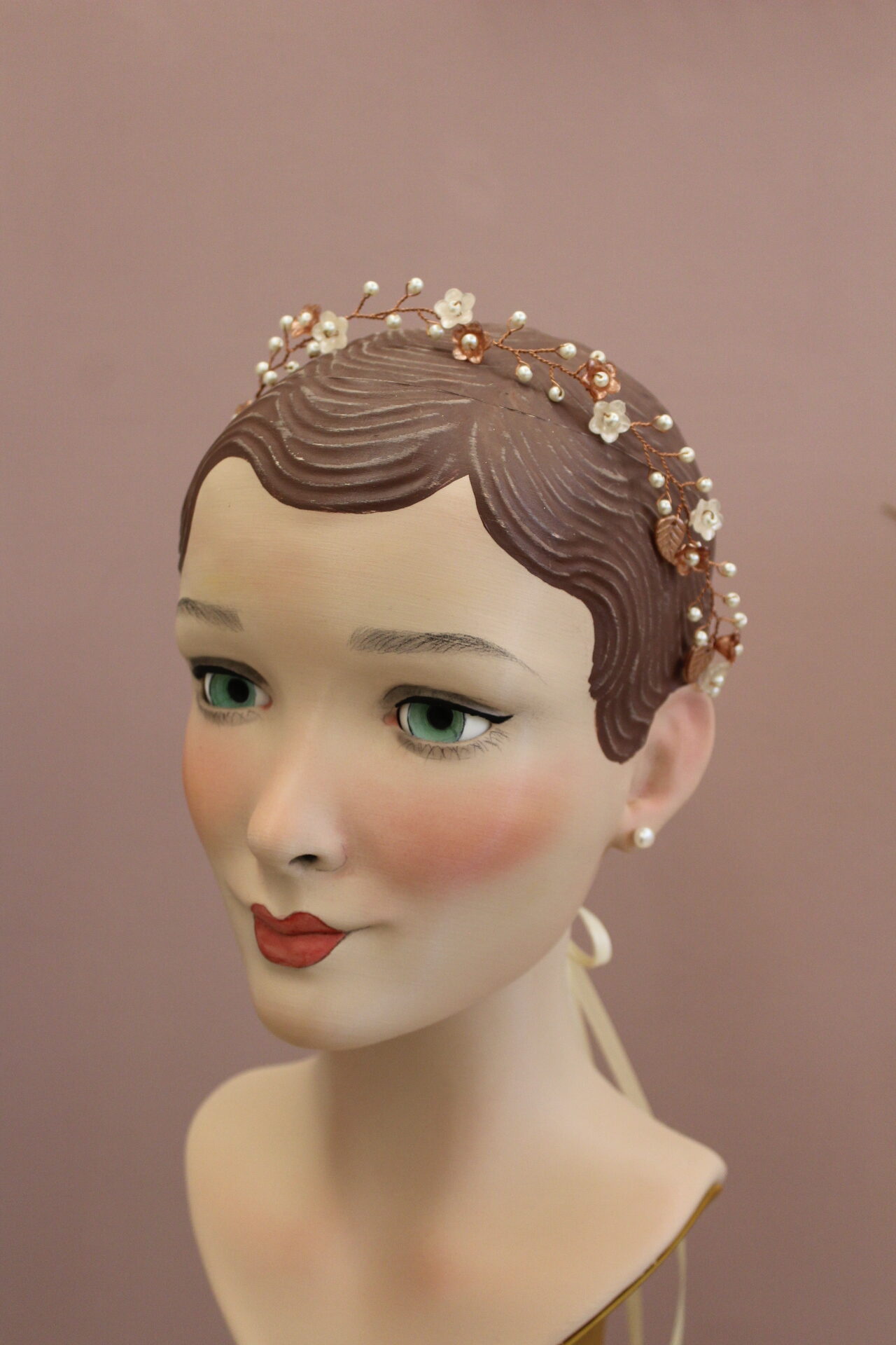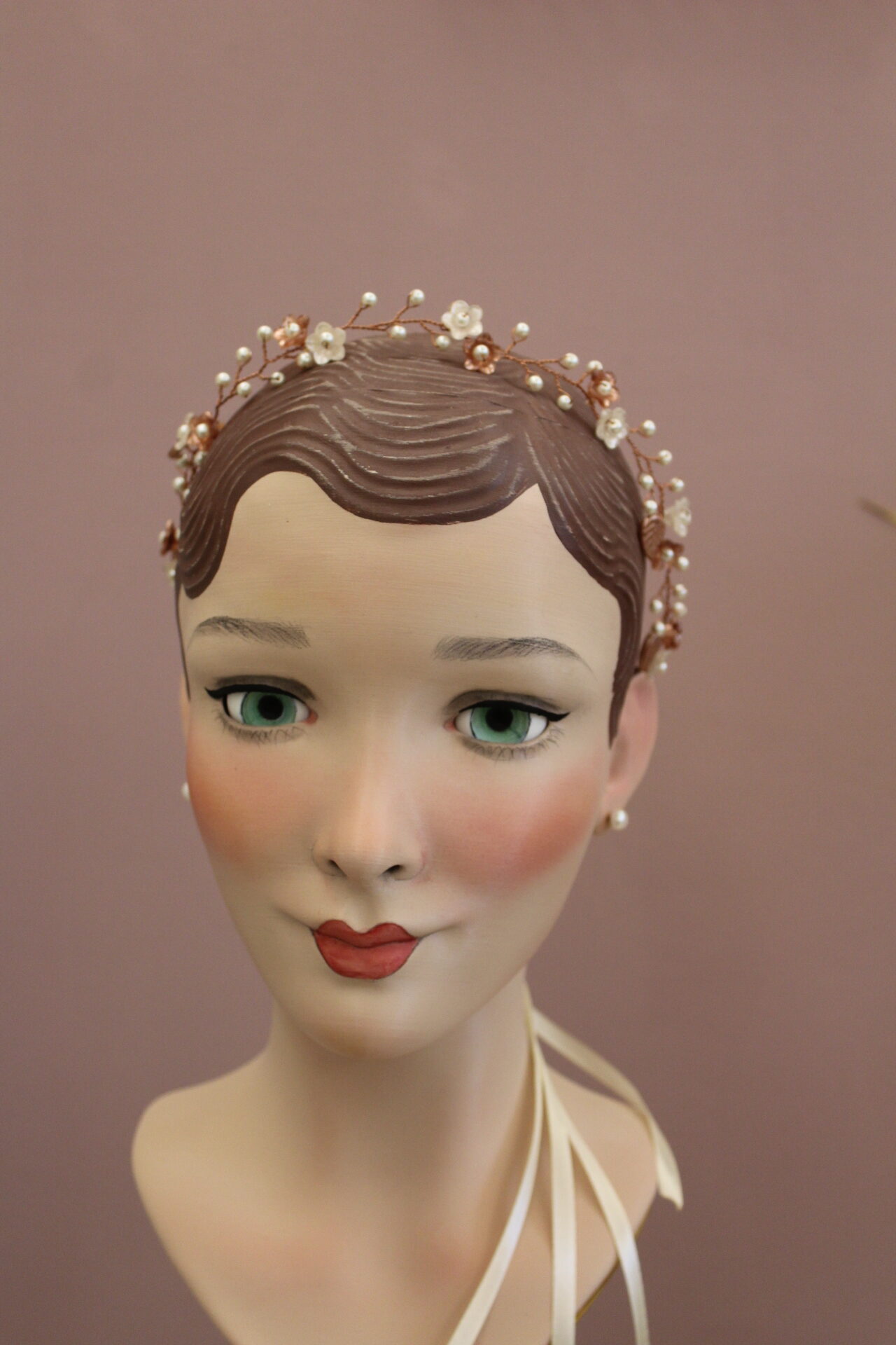 Haarkranz “Rosika” besteht aus von mir mit viel Liebe handbemalten Blumen und Blätter, die ich mit Glaswachsperlen kombiniert habe. “Rosika” ist dezent, edel, verspielt, romantisch und ein echter Hingucker zugleich.