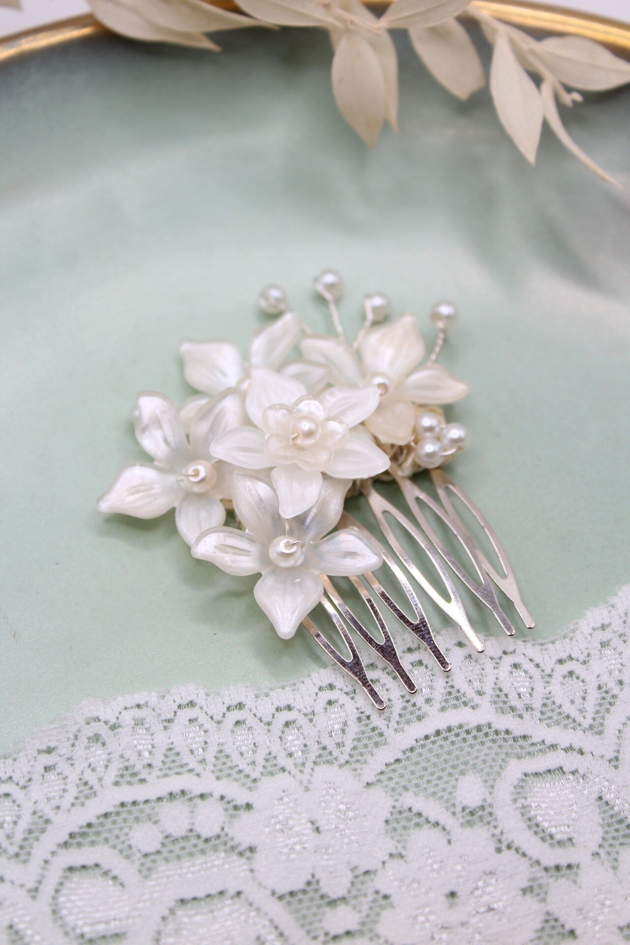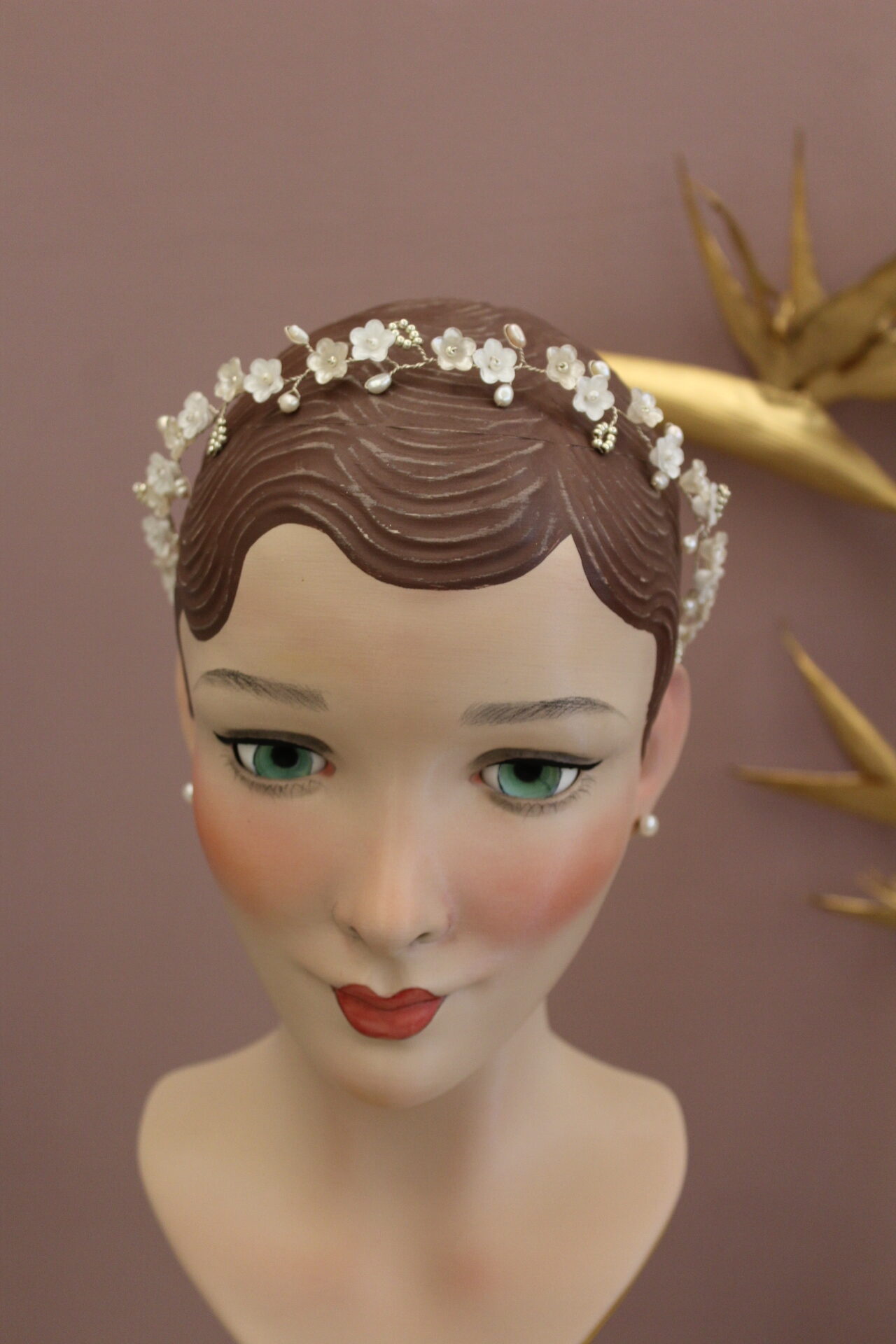 € 379.00 inkl. MwSt.“Adele” ist etwas ganz besonderes für mich. Als grosse Fan der 50er Jahre habe ich mich von dieser Ära inspirieren lassen. “Adele” besteht aus von mir in liebevoller Handarbeit bemalten Blüten aus zwei verschiedenen Grössen. Kombiniert habe ich mit echten Süsswasser Perlen und japanischen Miyuki Perlen. “Adele” schmiegt sich wunderbar an, befestigt wird ganz easy mit Bobbypins. “Adele” ist variabel einsetzbar, egal ob vorne, seitlich oder rückseitig, passt sowohl zum offenem Haar aber auch zu Hochsteckfrisuren. Perfekt auch in Kombination mit oder ohne Schleier.