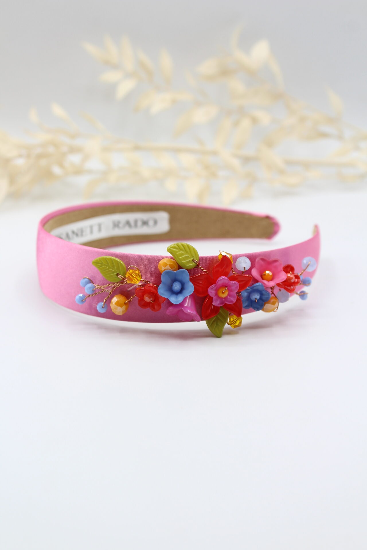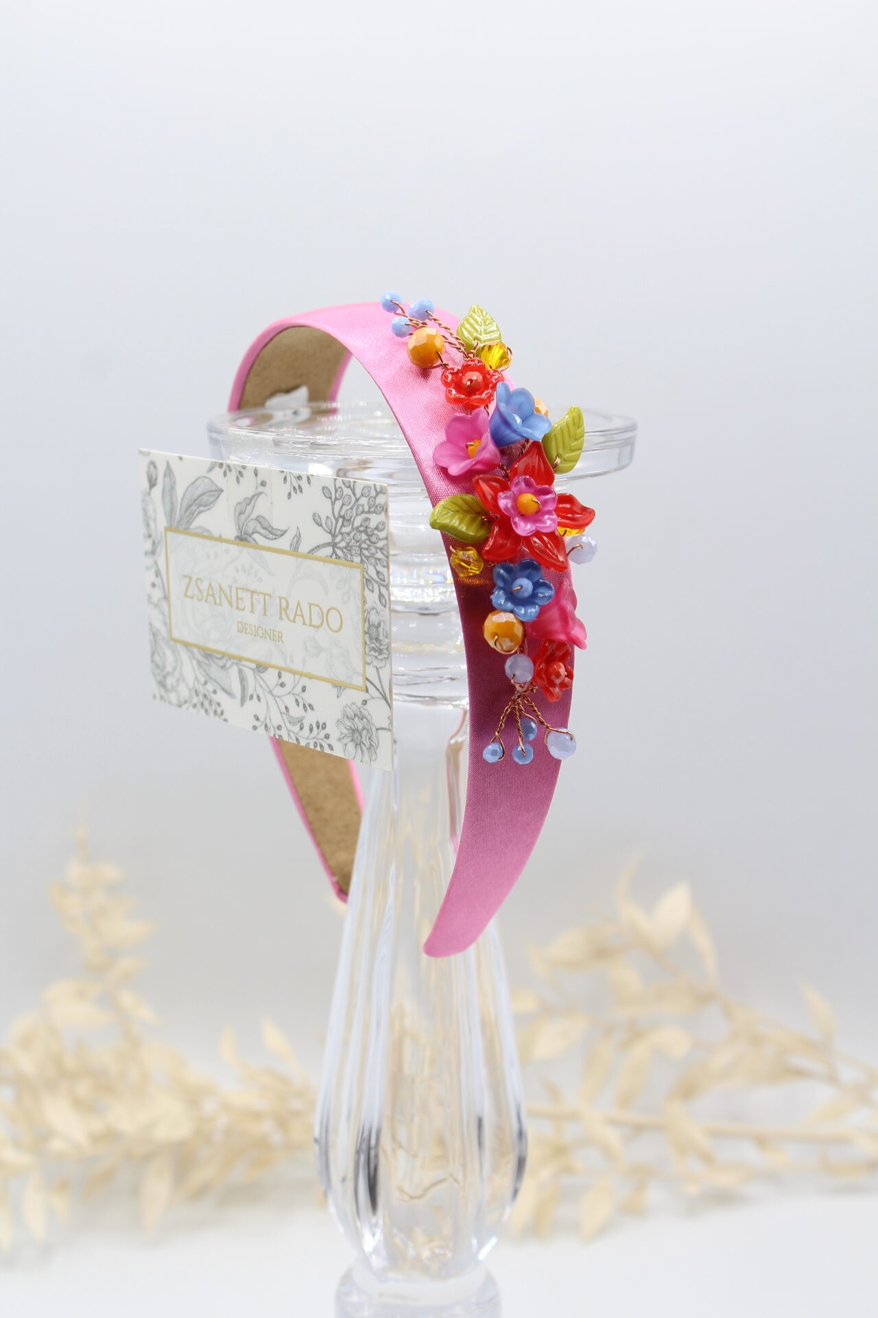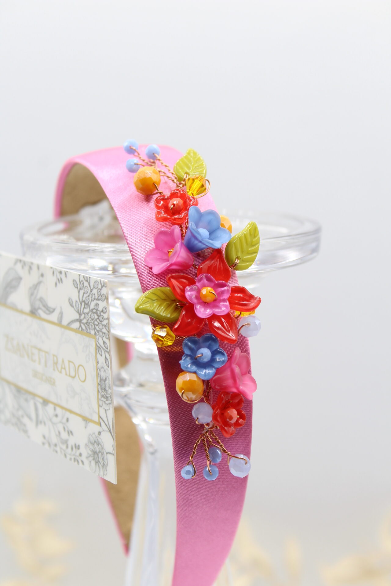 Haarreif “Chloe” besteht aus von mir mit liebevoll handbemalten Blumen und Blätter, die ich mit facettierten Glasperlen kombiniert habe. Der “Chloe” Haarreif besteht aus glänzendem Seidensatin in Verlauf Form. Der Florale Teil wurde von mir handgenäht.