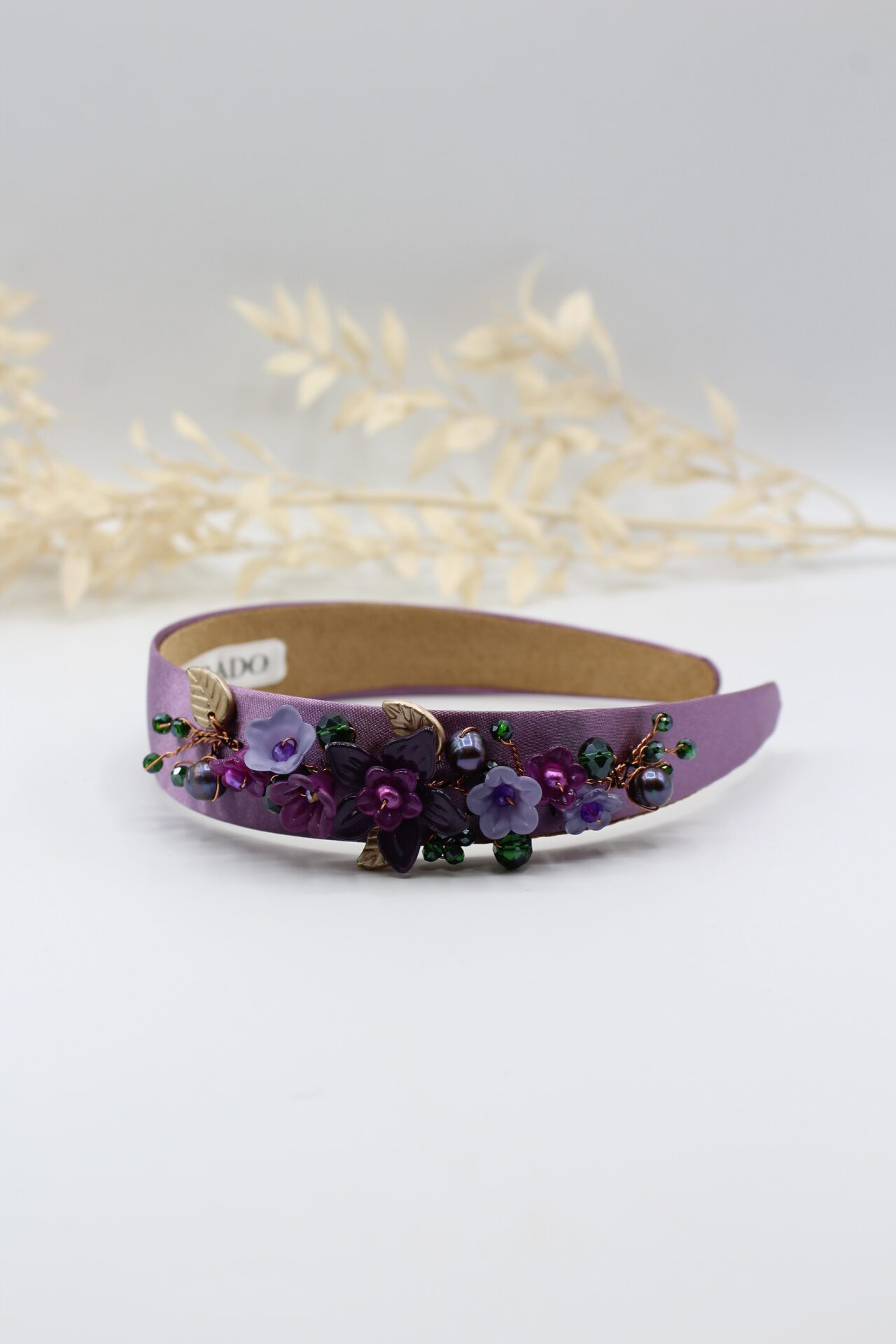 Haarreif “Chloe” besteht aus von mir mit liebevoll handbemalten Blumen und Blätter, die ich mit Süsswasserperlen und facettierten Glasperlen kombiniert habe. Der “Chloe” Haarreif besteht aus glänzendem Seidensatin in Verlauf Form. Der Florale Teil wurde von mir handgenäht.