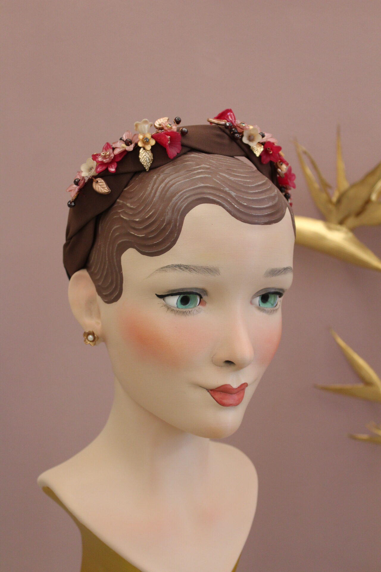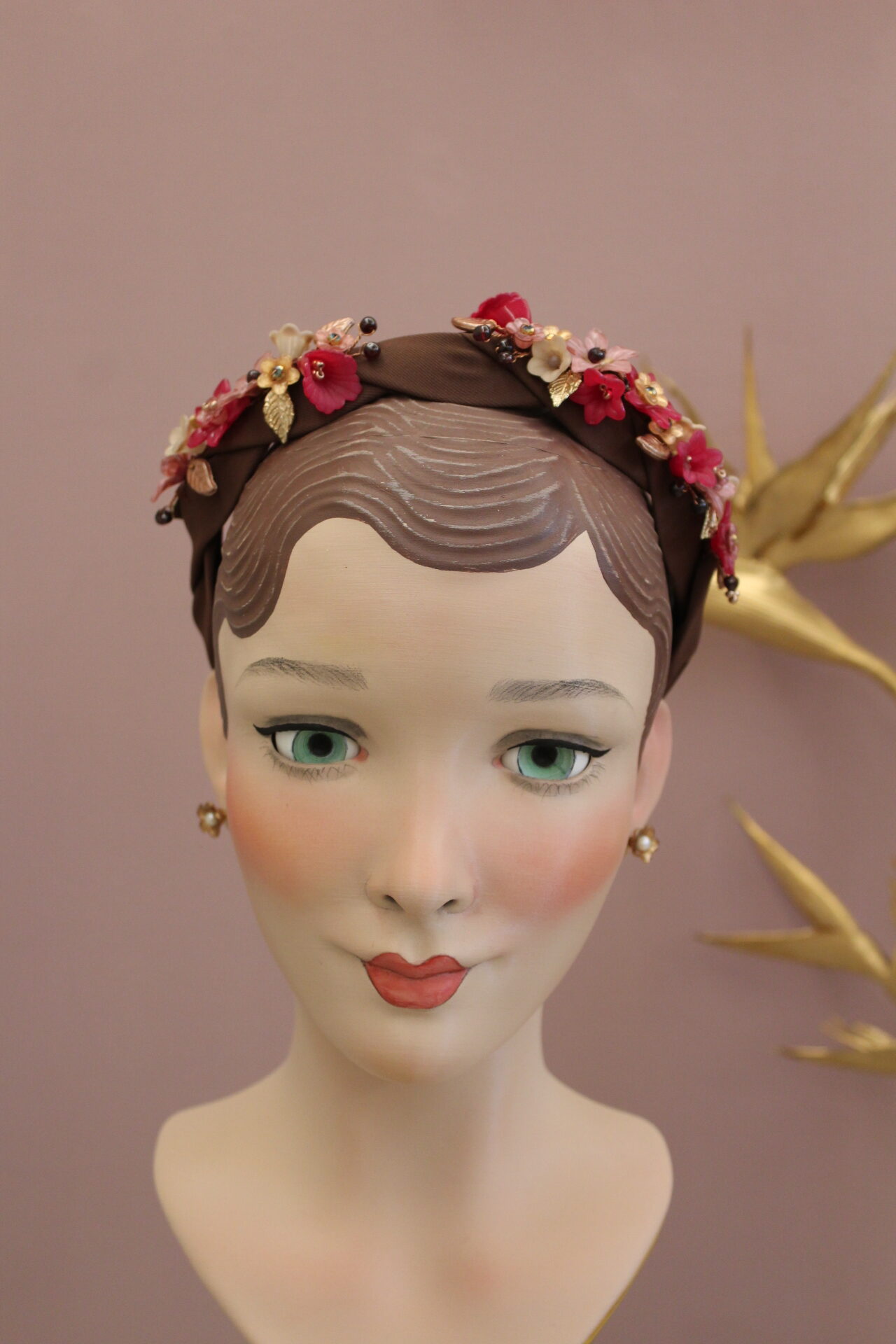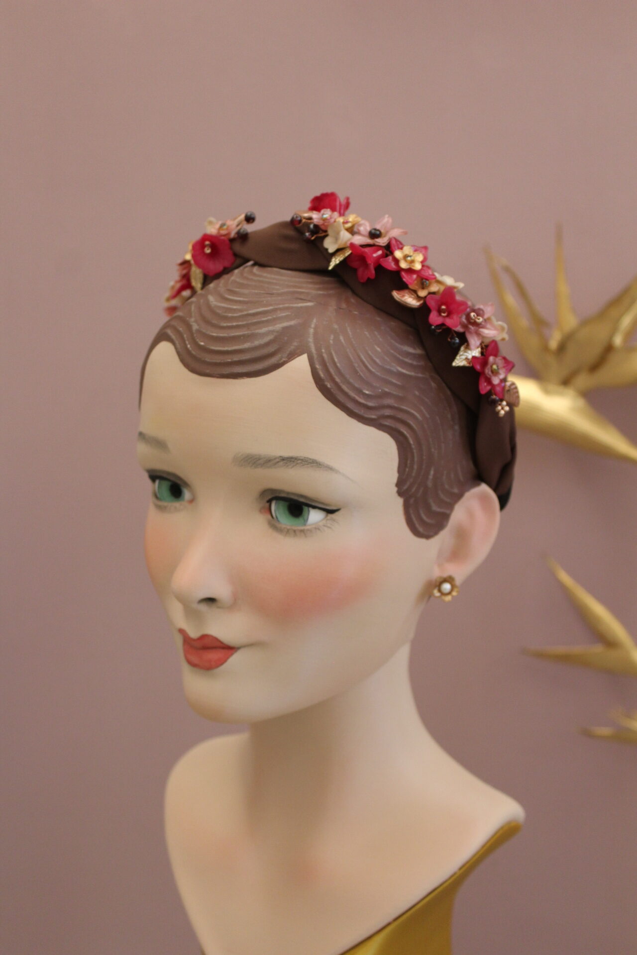 Farben : Schokobraun (Haarreif ) / Dunkelrot ( Granate ) / Rosegold / Beige /Magenta / Zartrosa / Braun / Zartgold / Rosegold ( Draht )