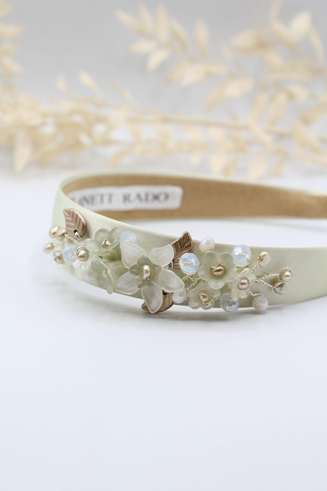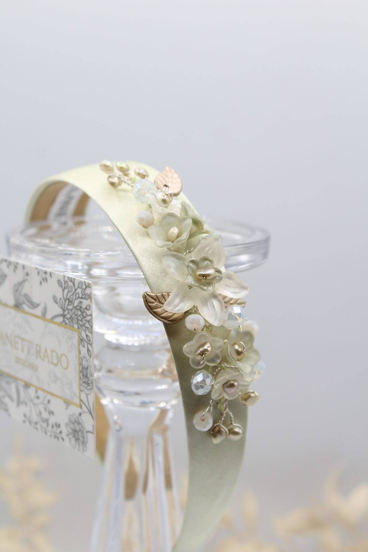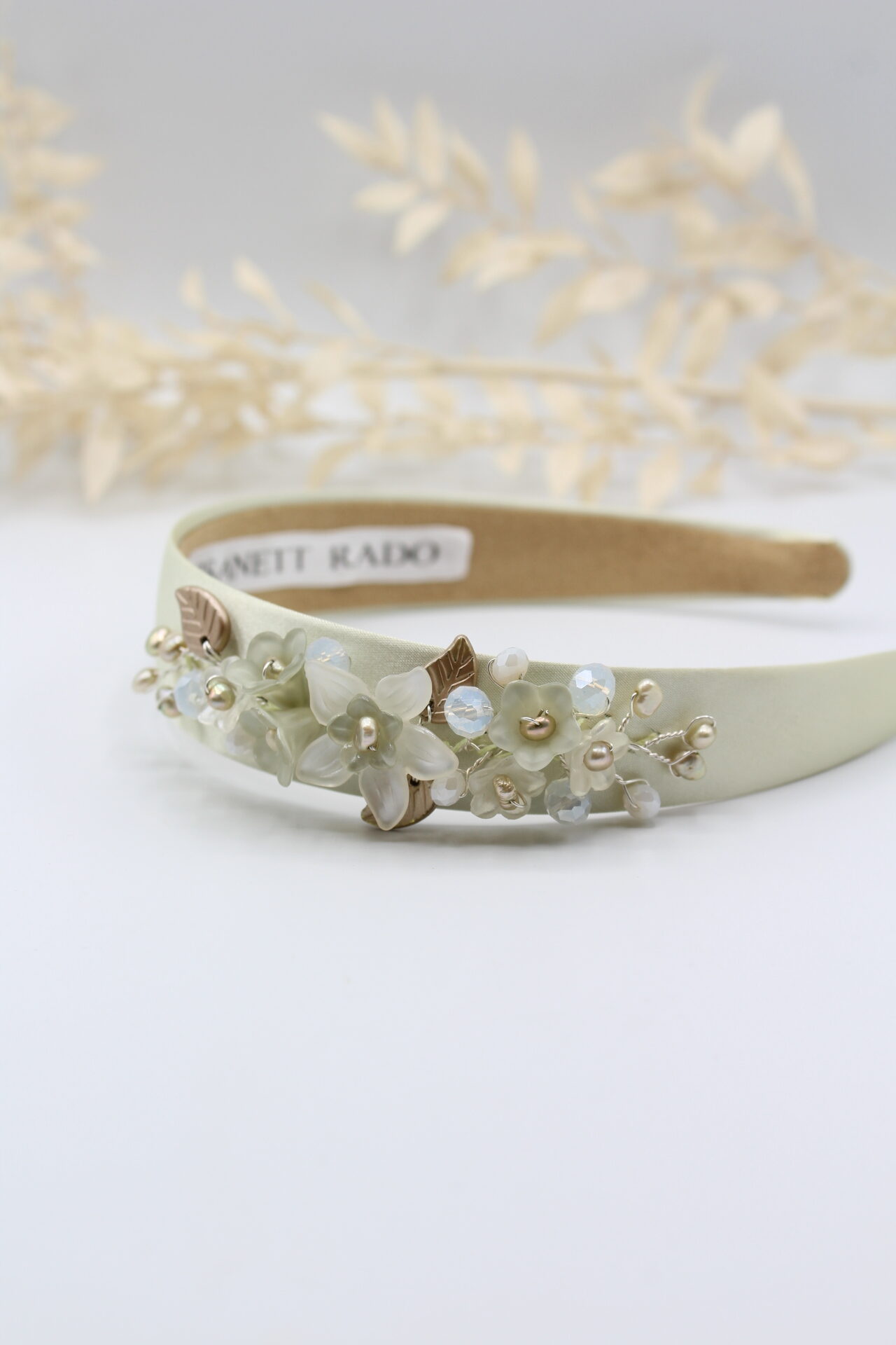 Haarreif “Chloe” besteht aus von mir mit liebevoll handbemalten Blumen und Blätter, die ich mit Süsswasserperlen und facettierten Glasperlen kombiniert habe. Der “Chloe” Haarreif besteht aus glänzendem Seidensatin in Verlauf Form. Der Florale Teil wurde von mir handgenäht.