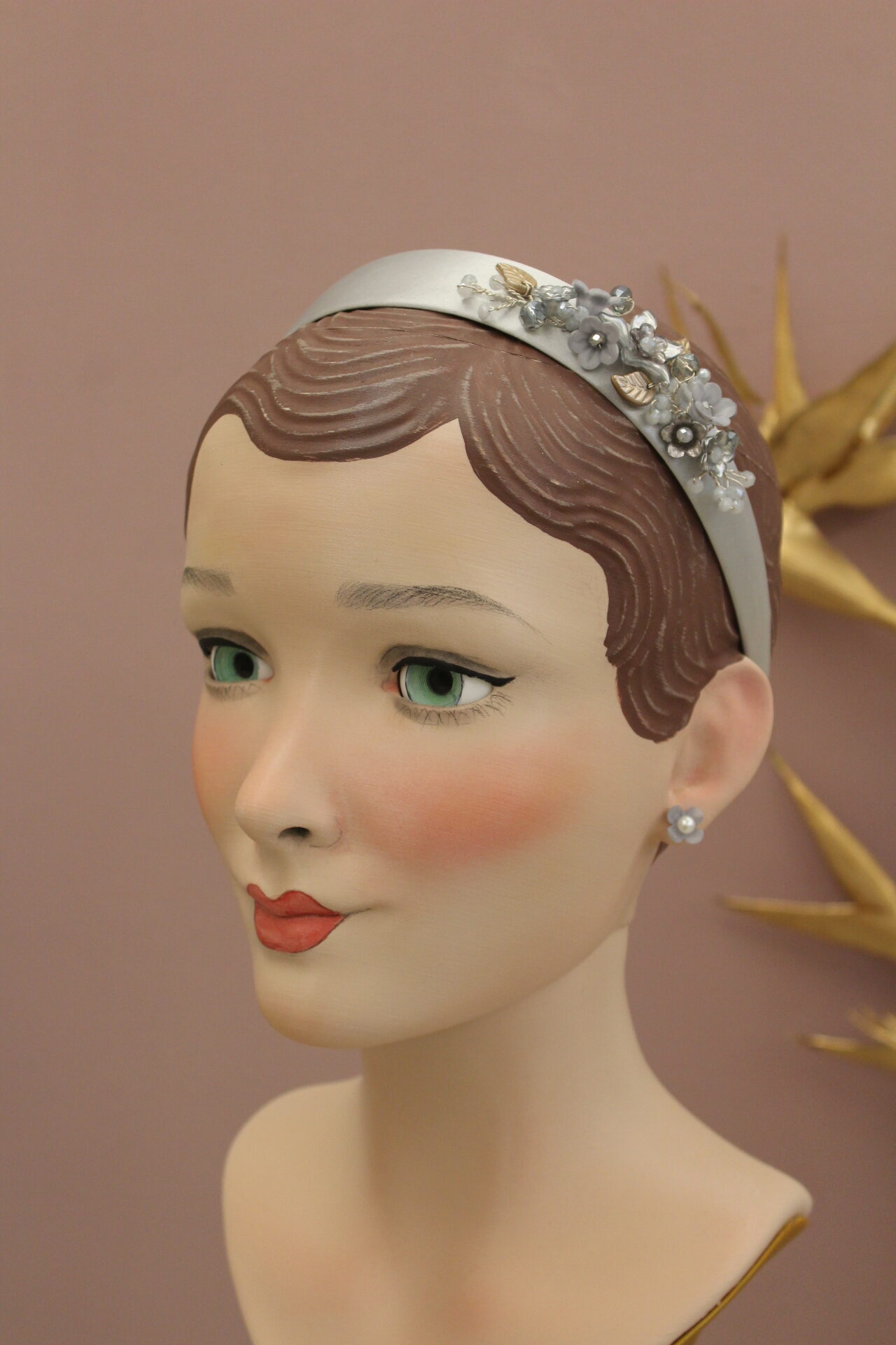 Haarreif “Chloe” besteht aus von mir mit liebevoll handbemalten Blumen und Blätter, die ich mit facettierten Glasperlen kombiniert habe. Der “Chloe” Haarreif besteht aus glänzendem Seidensatin in Verlauf Form. Der Florale Teil wurde von mir handgenäht.
