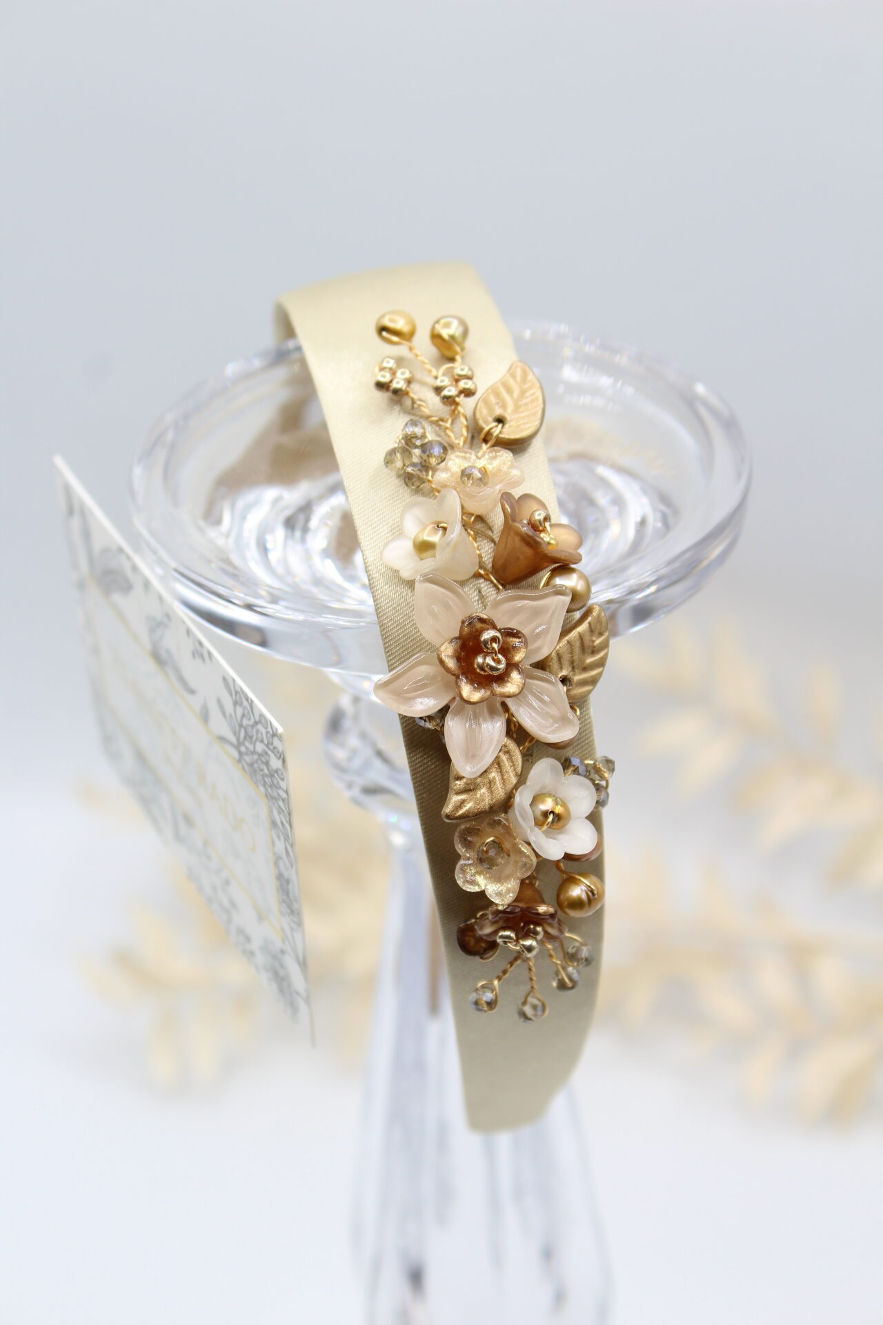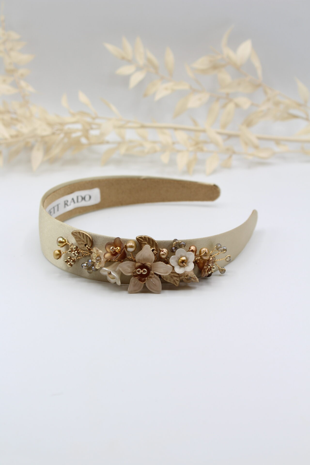Haarreif “Chloe” besteht aus von mir mit liebevoll handbemalten Blumen und Blätter, die ich mit fSüsswasserperlen und acettierten Glasperlen kombiniert habe. Der “Chloe” Haarreif besteht aus glänzendem Seidensatin in Verlauf Form. Der Florale Teil wurde von mir handgenäht.