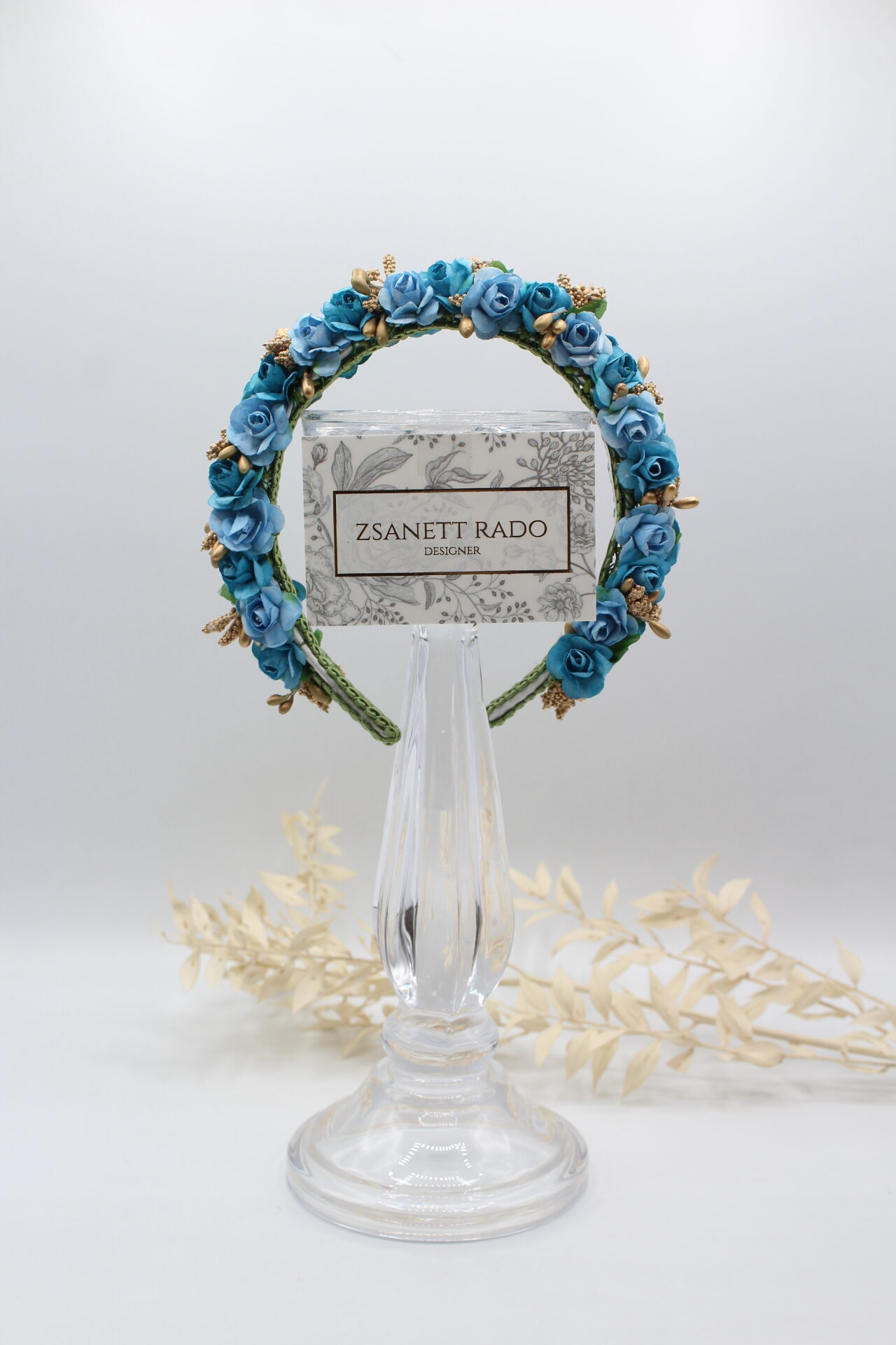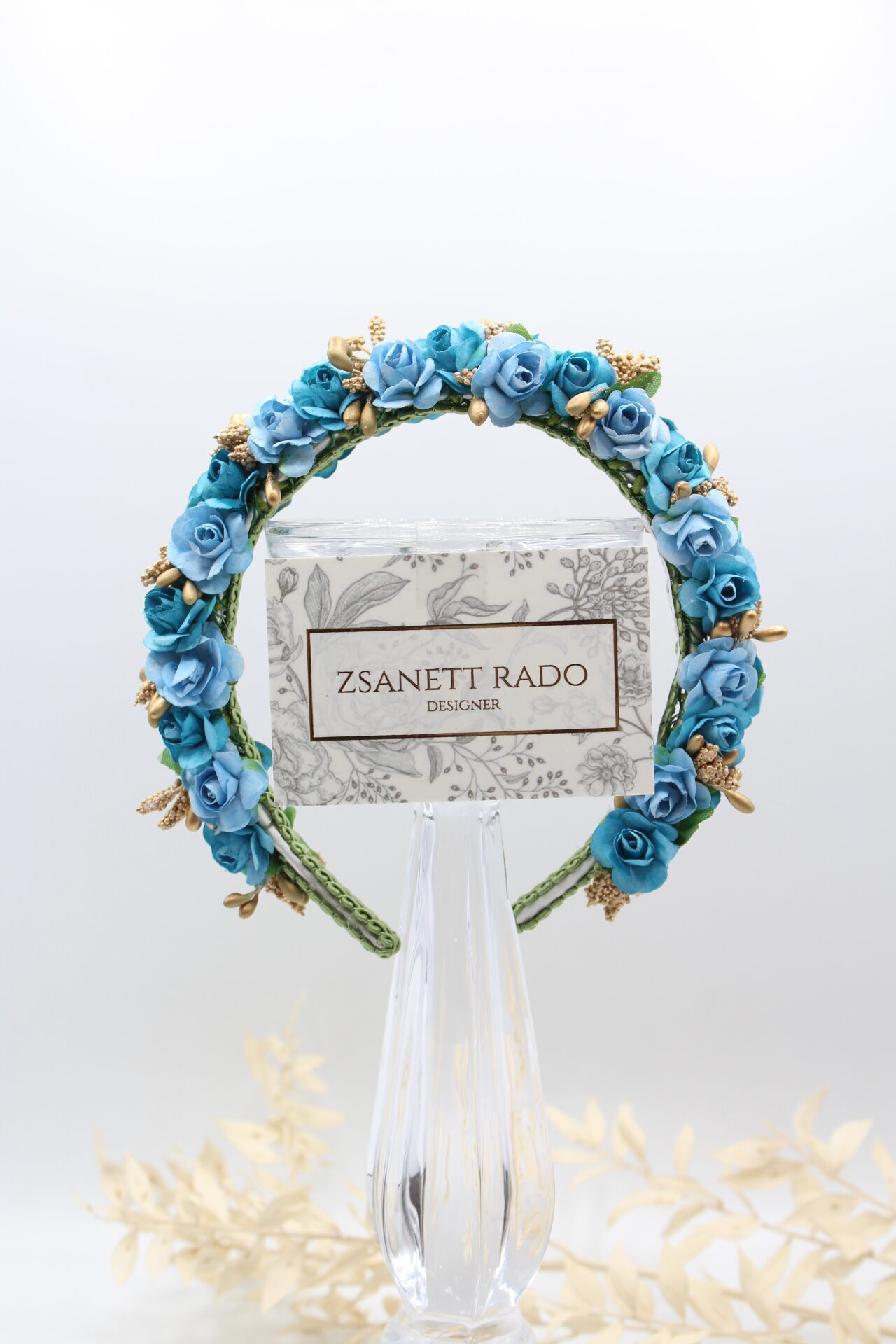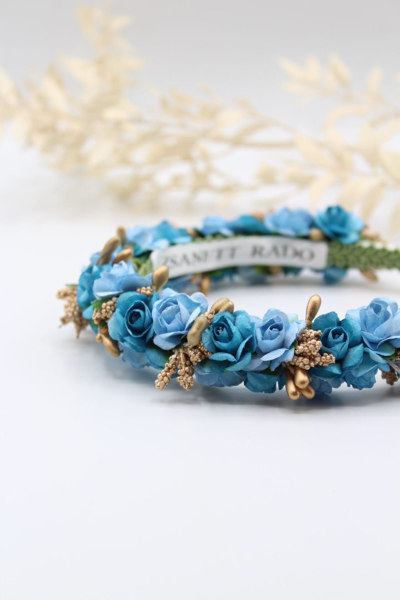 Die feinen Rosenblüten wurden von mir mit viel Liebe zum Detail handbemalt. Die Innenseite hab ich mit einer Borte fixiert, damit es beim Tragen möglichst bequem ist. Die Blüten sind zweireihig auf einem Haarreif von mir gebunden.